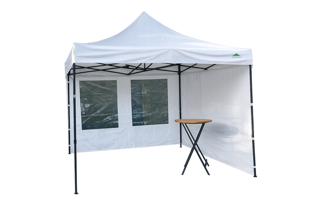 Wahlweise mit Seitenwänden und Regenrinnen – Standsicherungen inklusive.